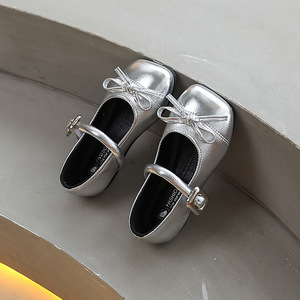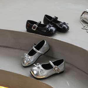 女童新款中大童单鞋2025春季浅口银色女韩式小皮鞋儿童演出舞蹈鞋