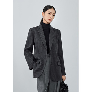 高级感轻奢条纹西装女2025秋冬季新款西装领长袖气质显瘦休闲外套