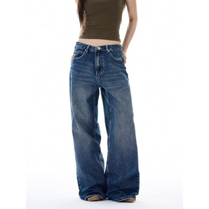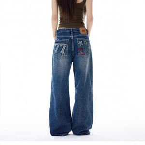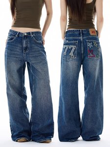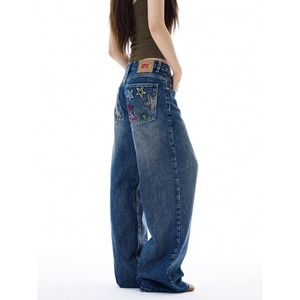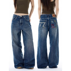 2025春季美式复古新款设计星星字母刺绣男女同款直筒拖地牛仔裤潮