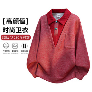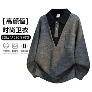 大码翻领假两件毛衣针织衫男女秋冬韩版休闲加厚保暖毛线高端毛衣