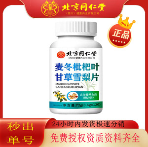 北京同仁堂朕皇麦冬枇杷叶甘草雪梨片72克/瓶雪梨一件代发