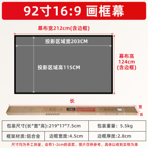 92寸16:9【灰玻纤】铝合金宽边画框幕