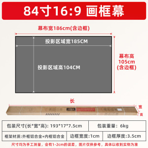 84寸16:9【灰玻纤】铝合金宽边画框幕