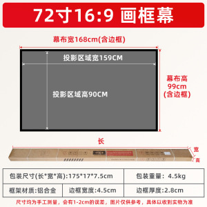 72寸16:9【灰玻纤】铝合金宽边画框幕