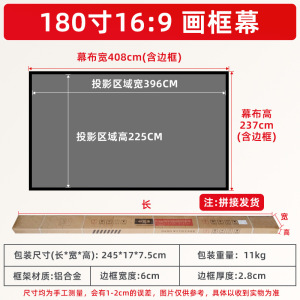 180寸16:9【灰玻纤】铝合金宽边6cm画框幕