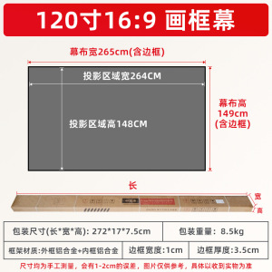 120寸16:9【灰玻纤】铝合金宽边画框幕