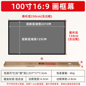100寸16:9【灰玻纤】铝合金宽边画框幕