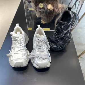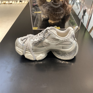 蝶澳真皮厚底老爹鞋2025新款春季网面百搭增高休闲时尚百搭运动鞋