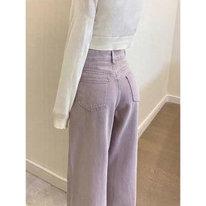 145小个子复古紫色宽松直筒牛仔裤女新款高腰显瘦垂感阔腿裤子