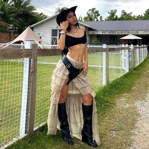 欧美夏季跨境INS风2025新款高腰修身气质纯色时尚百搭多蛋糕裙女