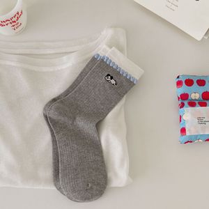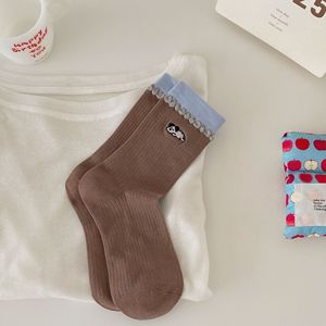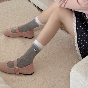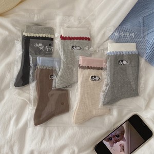 秋冬日系诸暨袜子女撞色泡泡花边刺绣卡通无骨堆堆袜可爱软趴小狗