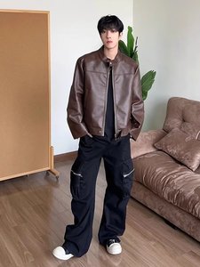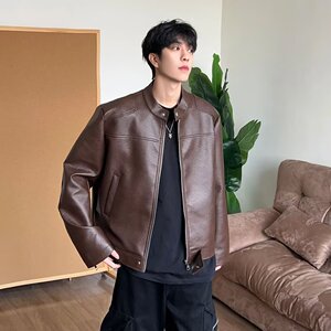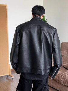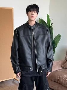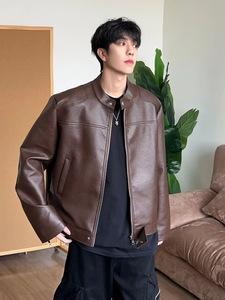 美式复古宽松立领机车皮衣外套男秋季新款设计感帅气休闲pu皮夹克