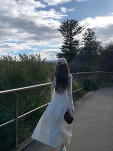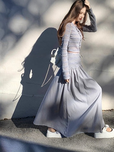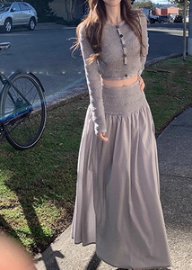 私享时刻 条纹针织上衣长半裙休闲两件套装女2025秋新款 一件代发