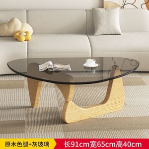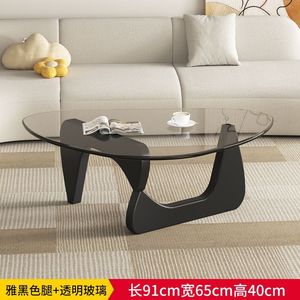 现代简约创意圆形茶几家用小户型客厅钢化玻璃茶几网红灰色茶桌