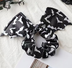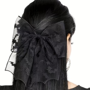 跨境蝙蝠网纱万圣节新款蝴蝶结黑白重工发夹发饰搭气质弹簧夹代发