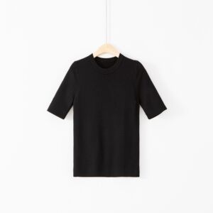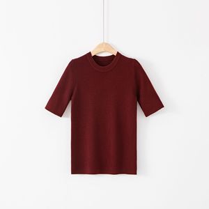 博伟羊毛混纺圆领无缝毛衫针织衫女内搭中袖修身打底衫上衣女