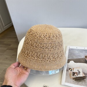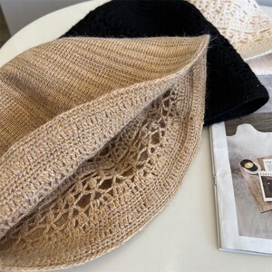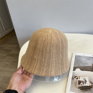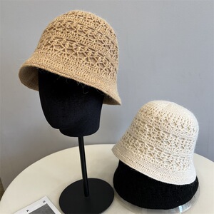 日系秋冬新款镂空提花双层针织水桶帽女文艺休闲保暖双面戴渔夫帽