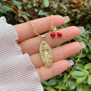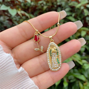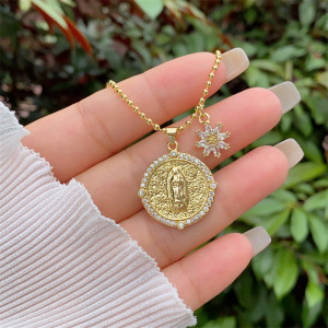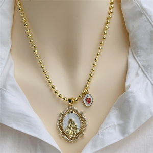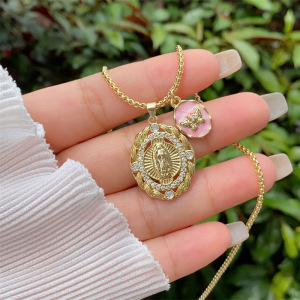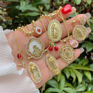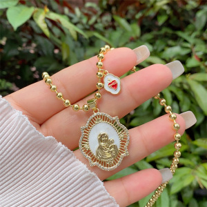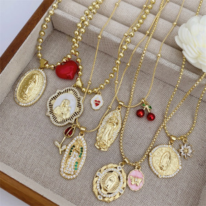 18K镀金圣母图案组合项链多种款式日常佩戴创意铜吊坠女士项链礼
