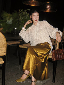 鹭青一【钟灵】复古印花衬衫上衣女秋季法式飘带减龄洋气