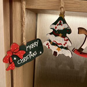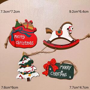 跨境新品圣诞装饰挂牌木质氛围礼物礼品礼盒装饰节日木片挂饰