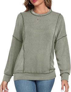 2025欧美跨境女装 亚马逊秋冬新款扭扭条长袖宽松运动衫上衣