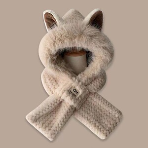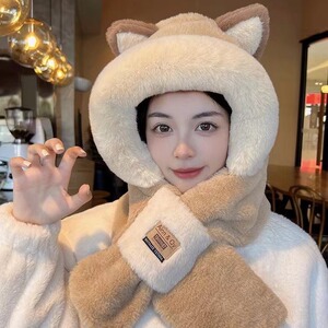 新款韩版帽子围巾一体冬季百搭可爱毛绒帽保暖加厚防冻风冬帽批发