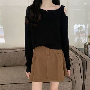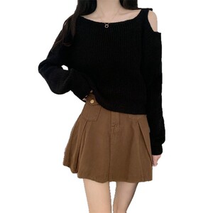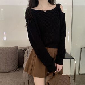 设计感露肩早秋上衣女甜辣别致高级感短款长袖打底衫秋季针织毛衣