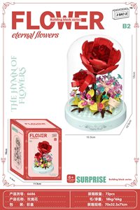 小颗粒积木DIY音乐盒玩具 跨境新品玫瑰花拼装360°旋转桌面摆件