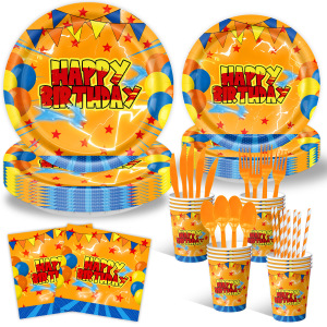 亚马逊擦边龙珠主题儿童派对纸盘纸杯纸巾桌布刀气氛布置套装用品