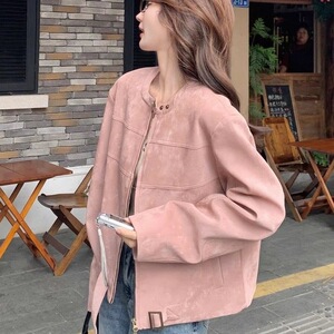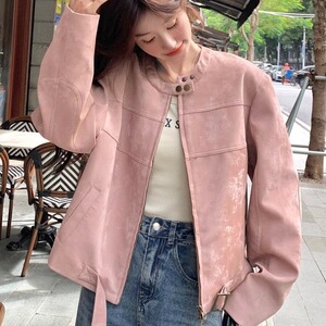 韩版外套女春秋季新款甜美小个子时尚夹克仿麂皮绒气质减龄上衣