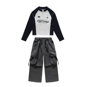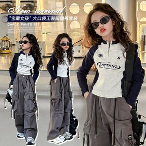 品质原创大量现货女童秋装大口袋工装裤套装