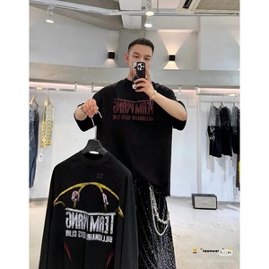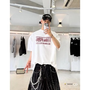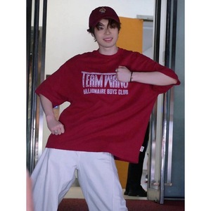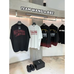 杀疯了#王嘉尔同款TEAM WANG x BBC 联名款做旧字母水洗磨破短袖