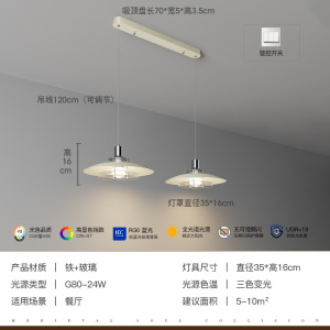北欧ph5玻璃飞碟餐厅吊灯护眼设计师吧台中古简约高级感中山灯具