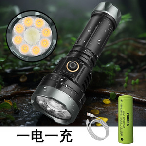 战术长续航手电超亮远射便携多功能手电白激光充电强光手电筒