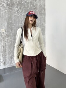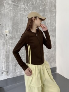 2025新款拉链圆领卫衣女显瘦高弹短款修身韩系运动上衣女秋季外套