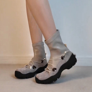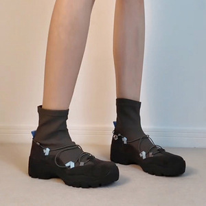 牛皮版~小众复古厚底瘦瘦靴女芭蕾运动风短靴百搭休闲马丁靴袜靴