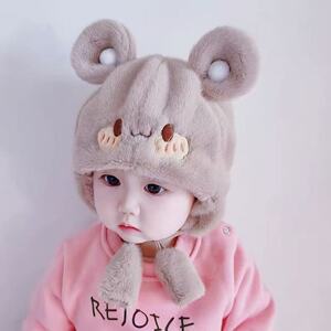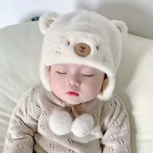 婴儿帽子秋冬季可爱超萌毛绒帽保暖婴幼儿套头卡通宝宝护耳帽防风