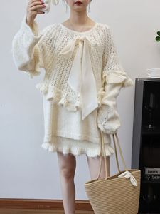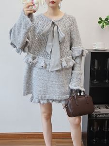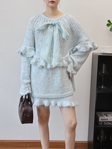 2025秋冬新款亮片荷叶边设计感针织衫上衣半身裙两件套毛衣套装女
