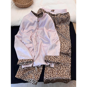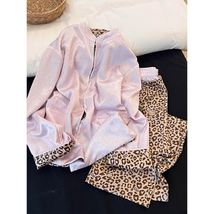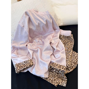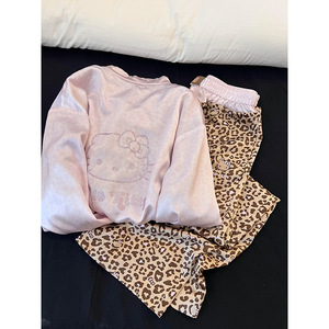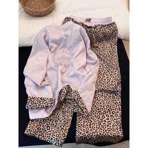 纯欲拼接高级感凯蒂猫印花睡衣女春秋款新款大码家居服豹纹套装