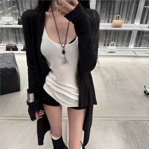 大码女装胖MM不规则下摆针织开衫气质慵懒显瘦简约吊带背心两件套