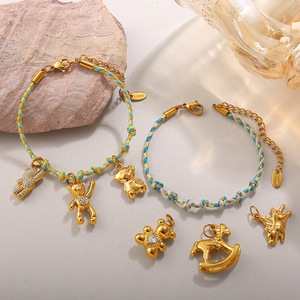 欧美跨境新品可爱精致DIY镶钻动物吊坠不锈钢镀18K金百搭吊坠合集