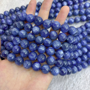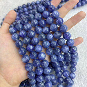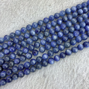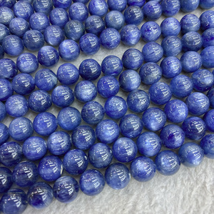 5A天然巴西蓝晶石散珠串珠批发 老矿猫眼蓝晶石手链水晶圆珠散珠