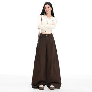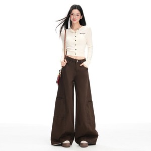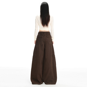 2025年秋装新款美式辣妹工装阔腿高腰显瘦牛仔裤女休闲百搭咖色潮