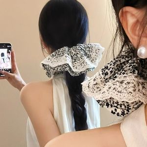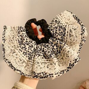碎花裙摆~法式复古蕾丝黑色大肠发圈女高级感发饰大号发绳新款春
