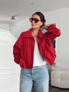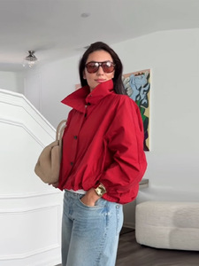 立领纽扣纯色长袖外套 欧美跨境2025秋季新款休闲风单排扣外套