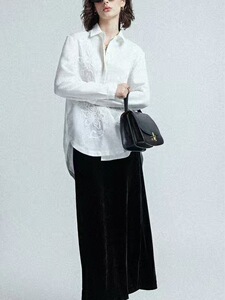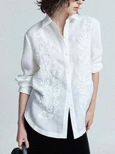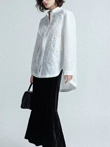 寻迹灵感/重工立体盘绣/自洽从容天丝麻休闲感防晒白色衬衫女上衣