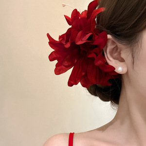 新中式新娘红色花朵发夹女古风旗袍侧边夹子头花发饰度假旅游头花