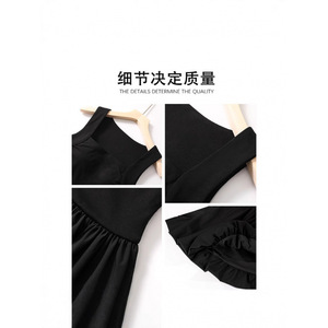 黑色吊带花苞连衣裙