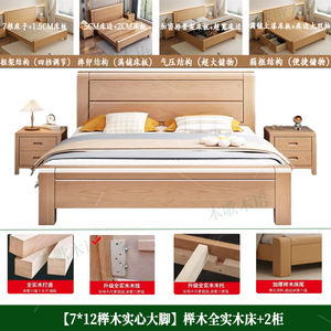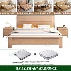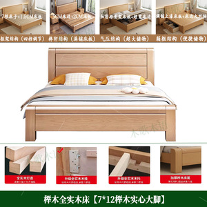 榉木全实木床主卧双人床大床加厚北欧现代简约1.5米1.8婚床储物床