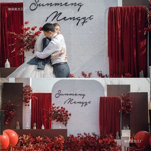 婚庆金丝绒装饰纱幔背景背景布幔宝宝周岁订婚背景纱幔红色布置